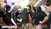 Очкаричка в чулках принимает буккаке от огромной толпы парней со стоячими членами