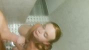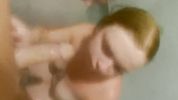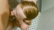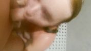 Рыжая сучка любит отсасывать в душе, заглатывая хуй полностью и глотая сперму