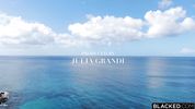 Девчонка с упругой попкой впускает в рот и пизду огромнейший чёрный хуй чернущего негра