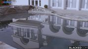 Красотка заломилась в ванную к негру, чтобы сосать его хуй и подставлять свою дырку