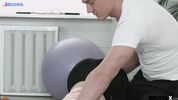 Крепко зажал фитоняшку на коврике и брутально оттрахал в пизду и очко