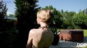 Гибкая развратная блонди расслабляется у бассейна мастурбацией писечки