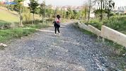 Очкастая шлюшка завершила пробежку на хую незнакомца