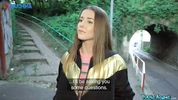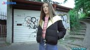 Описание:Пикапер снова отправился на охоту за девушками, а ловить он их будет, якобы, на социальный эксперимент со съёмкой на камеру. Остановив симпатичную тёлочку, чувак быстро вызнал, что ей 25 лет, она возвращается домой из колледжа, где учится на филфаке. И тут пацан начал действовать, для начала предложив малыхе 100 евро просто за снятие курточки. Потом он предложил ещё сотню за показать сиськи, но чикуля согласилась только на 200. Далее он заплатил за помацать титяшки и постепенно они дошли до минета и ебли. Девчонка усердно сосала и скакала пиздой на хую до самой ночи, ведь чувак перед охотой конкретно вздрочнул, чтобы шлюшка отработала деньжата на совесть.
