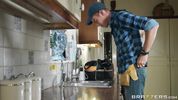 Развратная домохозяйка с шикарными дойками оттрахана в рот и в пизду возбуждённым сантехником