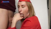 Семейные ролевые игры. Жена одев костюм стюардессы, с наслаждением делает красивейший миньет своему мужу !