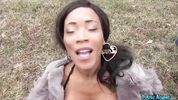 Негритянка за деньги показала сиськи пикаперу и отдалась в машине, не стесняясь камеры
