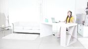 Молоденькая секретарша без трусиков соблазнила старого компьютерного мастера на куни и секс